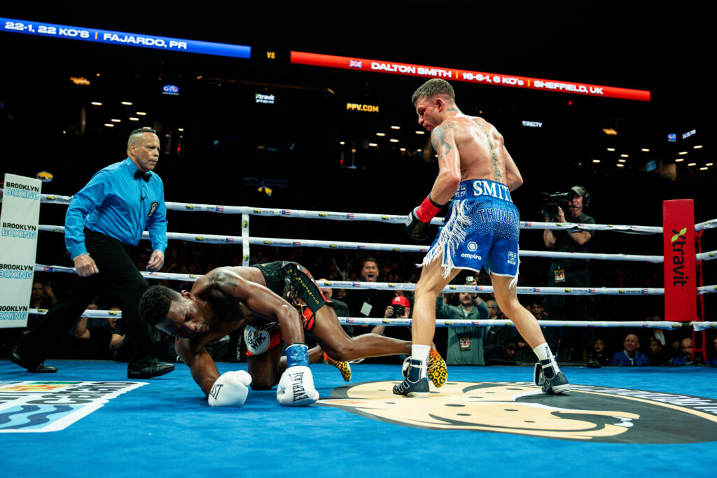 Smith started brilliantly in the opening round of the fight at the Barclays Center, and was happy to trade with the fearsome Puerto Rican ruler as the fight caught fire early, but as the fifth round entered it’s final minute, Smith unleashed a devastating assault punctuated with three fearsome right hands that robbed the champion of his senses and sent him to the canvas.