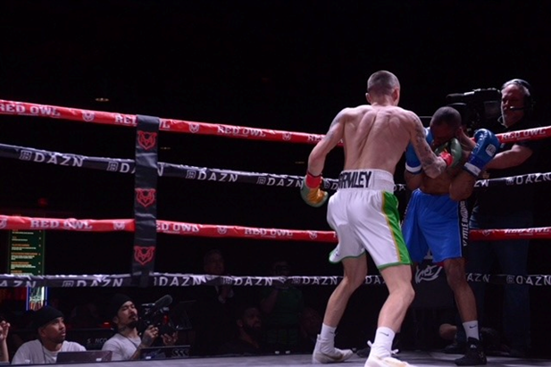 On March 7th, at the Alan Horowitz Sixth Man Center, twenty-two-year-old Cahir “The Gael” Gormley of Derry, Ireland, a two-time Irish National Amateur champion, fighting out of Scranton, Pennsylvania, made his highly anticipated professional debut. Tonight, Gormley entered the ring with a professional record of (1 win – 0 losses – 0 draws – 0 kos). His opponent, twenty-eight-year-old Dominicque “Archangel” McBride from Dallas, Texas, came into the four-round junior-middleweight contest with a record of (0 wins – 2 losses – 0 draws). From the opening bell, Gormley asserted his dominance, pressing the action, relentlessly stalking the shorter McBride around the ring. Utilizing an effective jab, he set up powerful left hooks and straight rights, keeping McBride on the defensive.