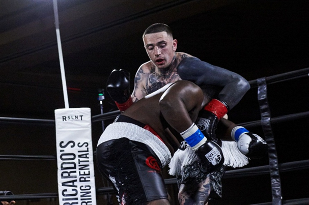 The night began with a heavyweight showdown between southpaw Edward “War” Millard, standing at 6 ft 4 inches from Upper Darby, Pennsylvania, and 5 ft 9 inches Anthony Wilson of Winchester, Virginia. Millard, entering the ring with a record of 1 win – 0 losses – 0 draws – 1 kos, faced Wilson, who was seeking his first victory after a debut loss. The bout was scheduled for four rounds. Millard, under the guidance of his trainer Glen Turner, wasted no time at the opening bell. He immediately worked behind his jab, methodically searching for opportunities to land his powerful punches. Both fighters exchanged jabs, but the taller Millard pressed the action, taking control of the ring. Midway through the round, Millard unleashed a rapid combination that dropped Wilson to the canvas. Wilson quickly regained his footing as referee Dali reached the count of three, wiped his gloves, and allowed the match to continue.